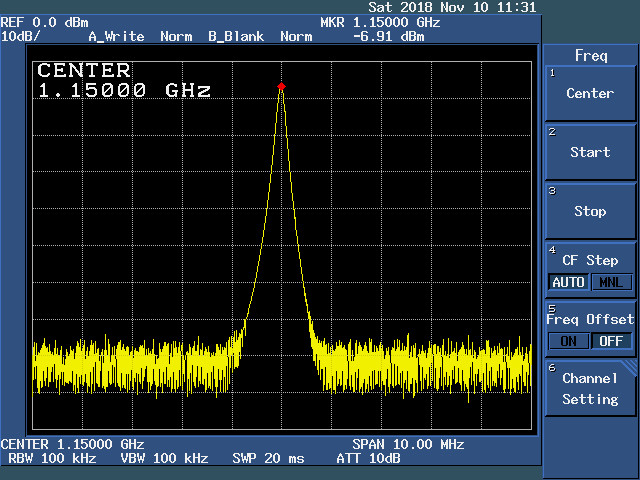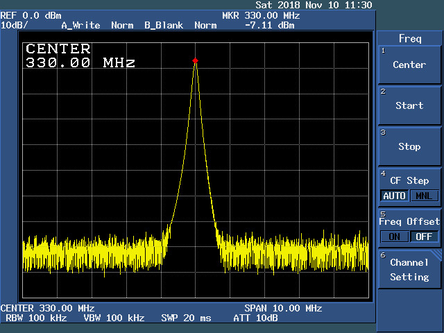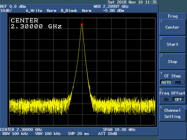 写真は100MHz、330MHz、1150MHz、2300MHzで10MHzスパンです。