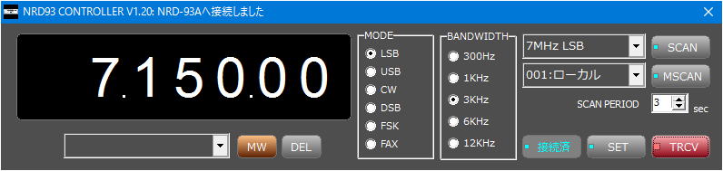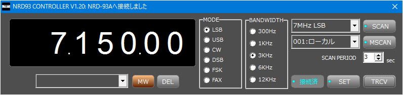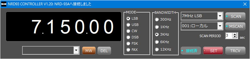 "SET"ボタンを押すといわゆる"設定"モードになり、PCからNRD-93をコントロールすることが出来ます。