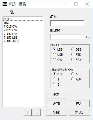 数字(9桁)+CR 周波数,モード,フィルタの設定 NNNNNNNFM 051107012 周波数=7011.5KHz/1KHz/CW