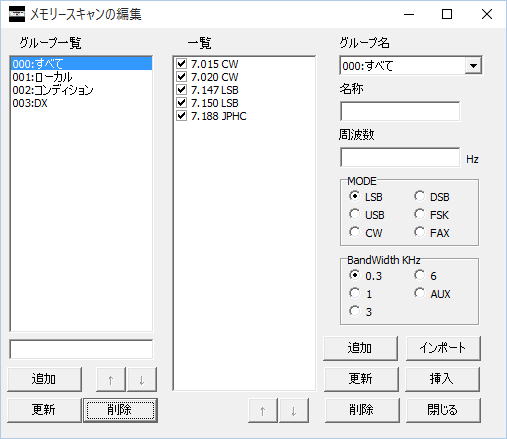 アマチュアバンドを登録してありますが、自由に編集できます。