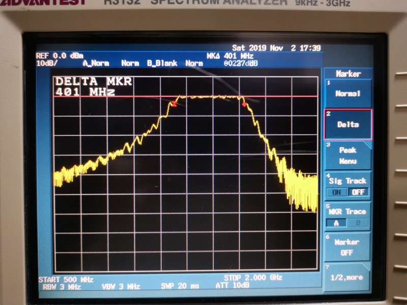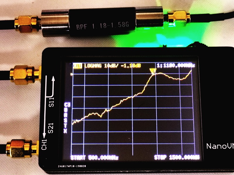 フィルターは1180MHz-1580MHzのバンドパスです。