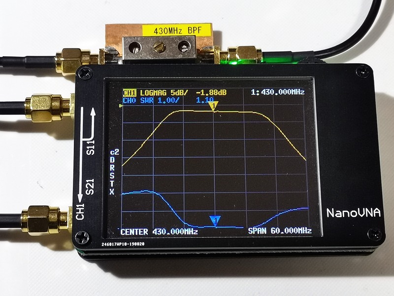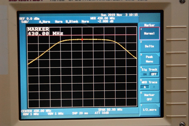 1G以下なら間違いなく実用になる感触なのですが、確認の意味で430MHz BPFを測定してみました。