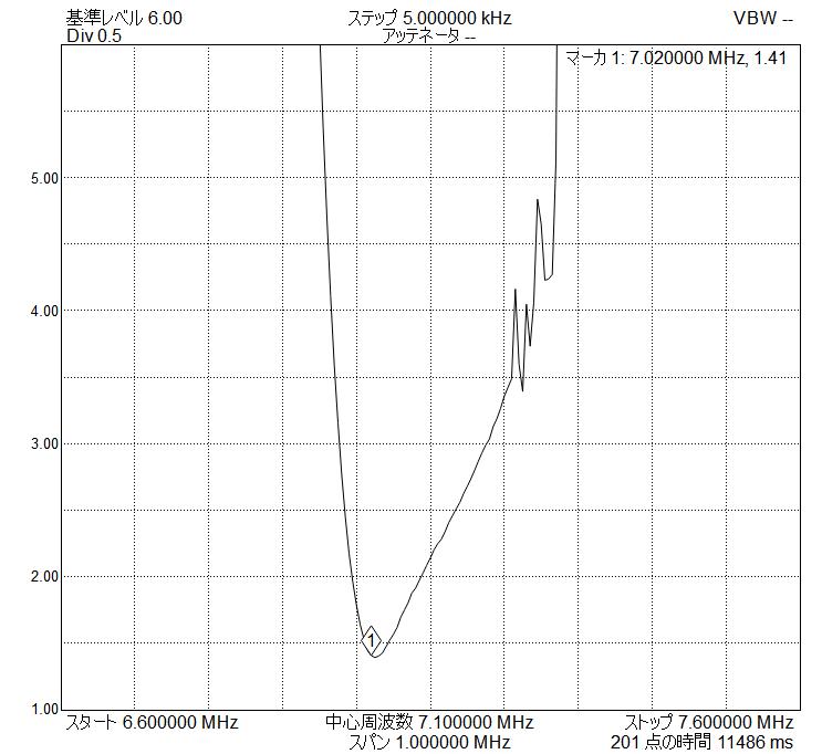 下の写真は7.020MHzに合わせたKAI-403Sを測定したものです。)