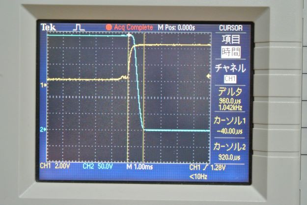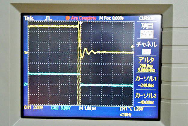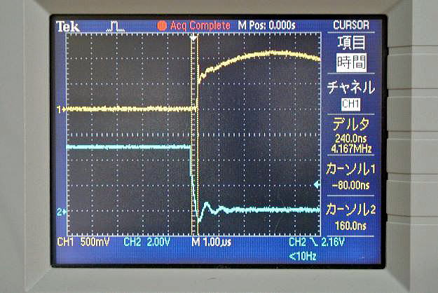 切替速度は立ち上がり240ナノ秒、立下りは500ナノ秒でした(下記の理由から遅延時間切り替えスイッチを付けました)