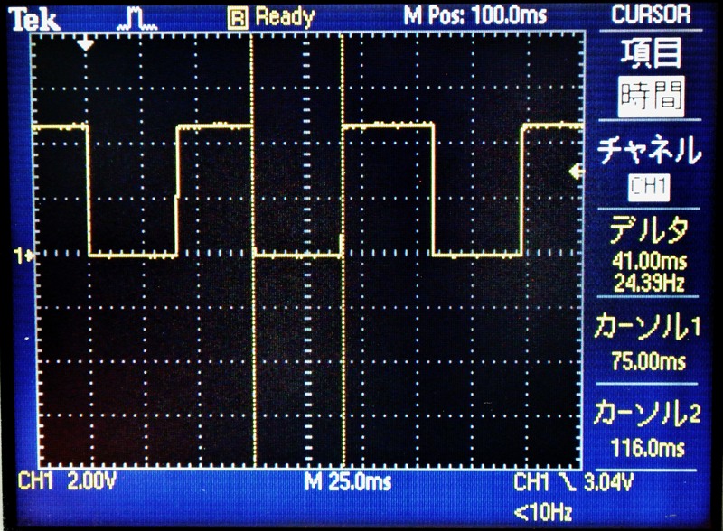 キーダウン後接点が落ち着くまで10ms程度かかります。