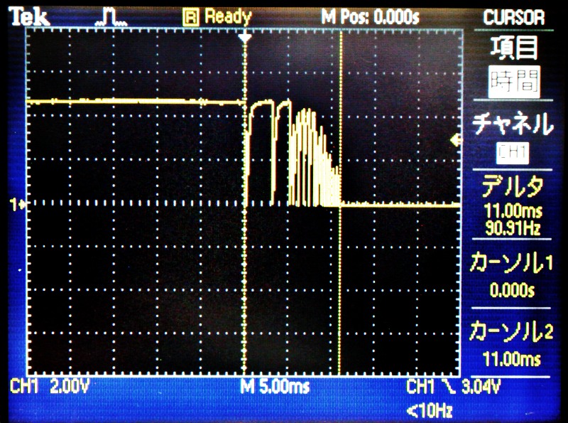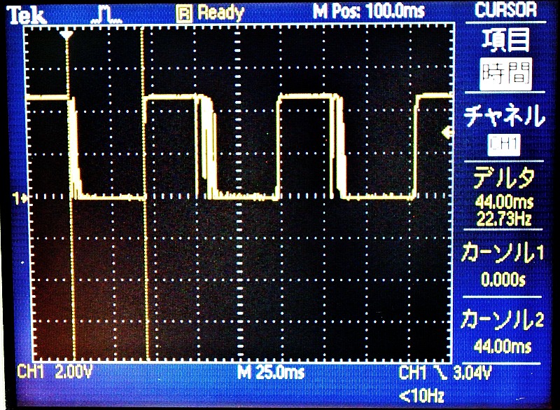 改造前の波形(キーダウン時のチャタリングが激しい)